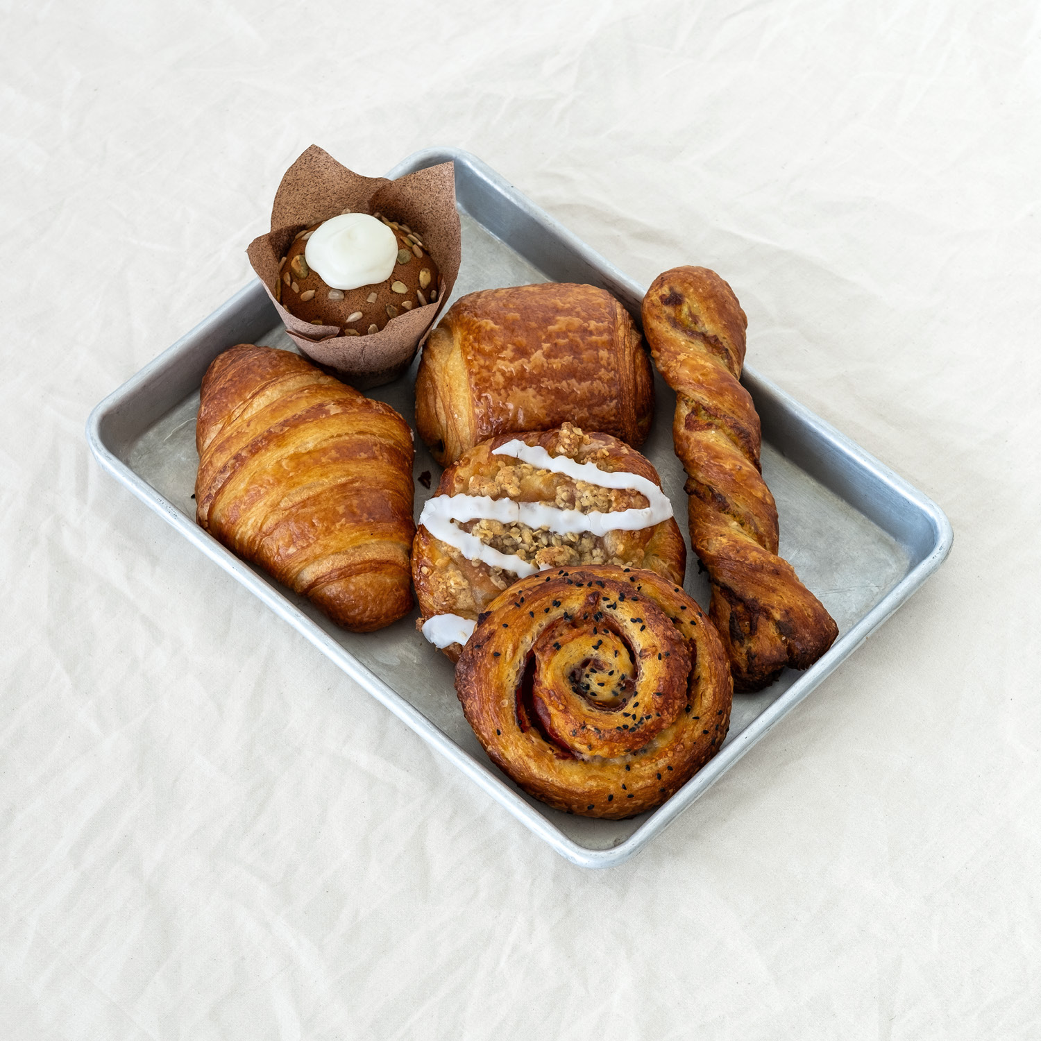 Viennoiseries pur beurre, poussées et cuites tous les matins.